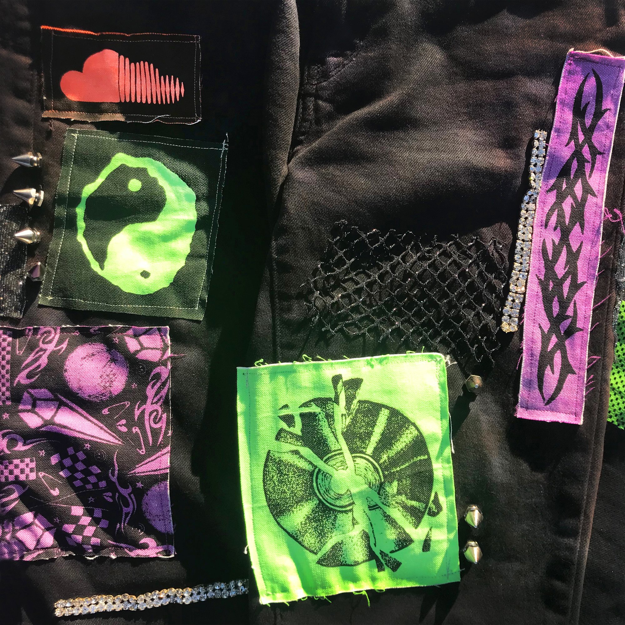 The illustrated imagery cross-references internet-based DIY cultures including cyberpunk, luxury trash fashion, Soundcloud rap, underground club music and LA goth.